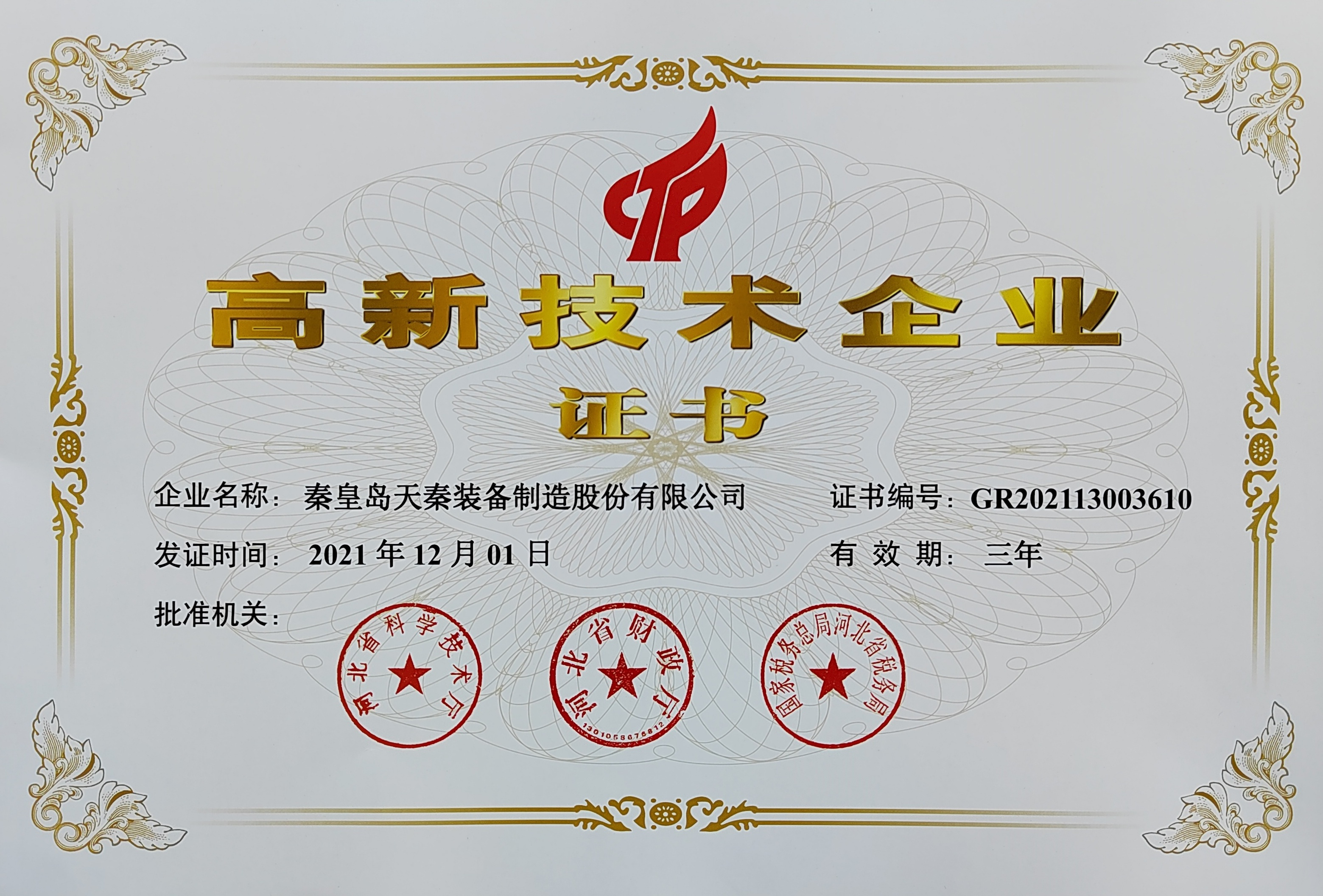 - 秦皇島天秦裝備制造股份有限公司創(chuàng)立于1996年,總部位于河北省秦皇島市經濟技術開發(fā)區(qū),秦皇島廠區(qū)占地4萬平方米,擁有3萬平方米的標準廠房、辦公樓和工程技術研發(fā)中心;分部天津廠區(qū)位于天津市靜海經濟開發(fā)區(qū),占地2萬平方米,擁有1.6萬平方米標準廠房。 公司通過了GB/T 19001質量管理體系及GB/T 24001環(huán)境管理體系認證,是國家高新技術企業(yè)、河北省軍民融合產學研用創(chuàng)建基地,建有省級院士工作站。